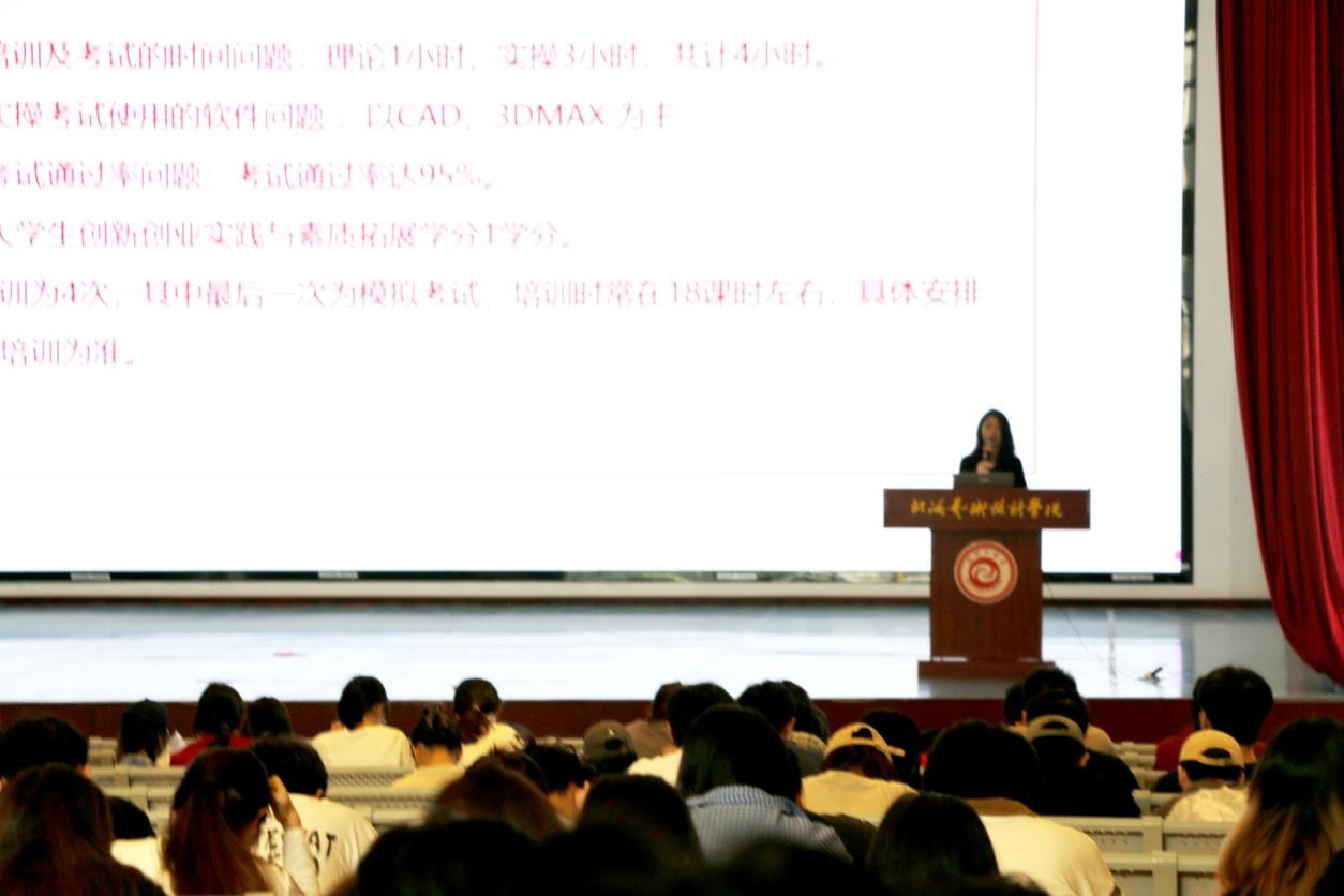 2024年11月16日,建筑与环境艺术学院在大礼堂成功举办了“1+X”室内设计职业技能等级证书宣讲会。此次活动目的是为环境设计、建筑学和土木工程三个专业的学生提供深入了解“1+X”证书体系的机会,助力学生提升专业技能,实现自我价值。