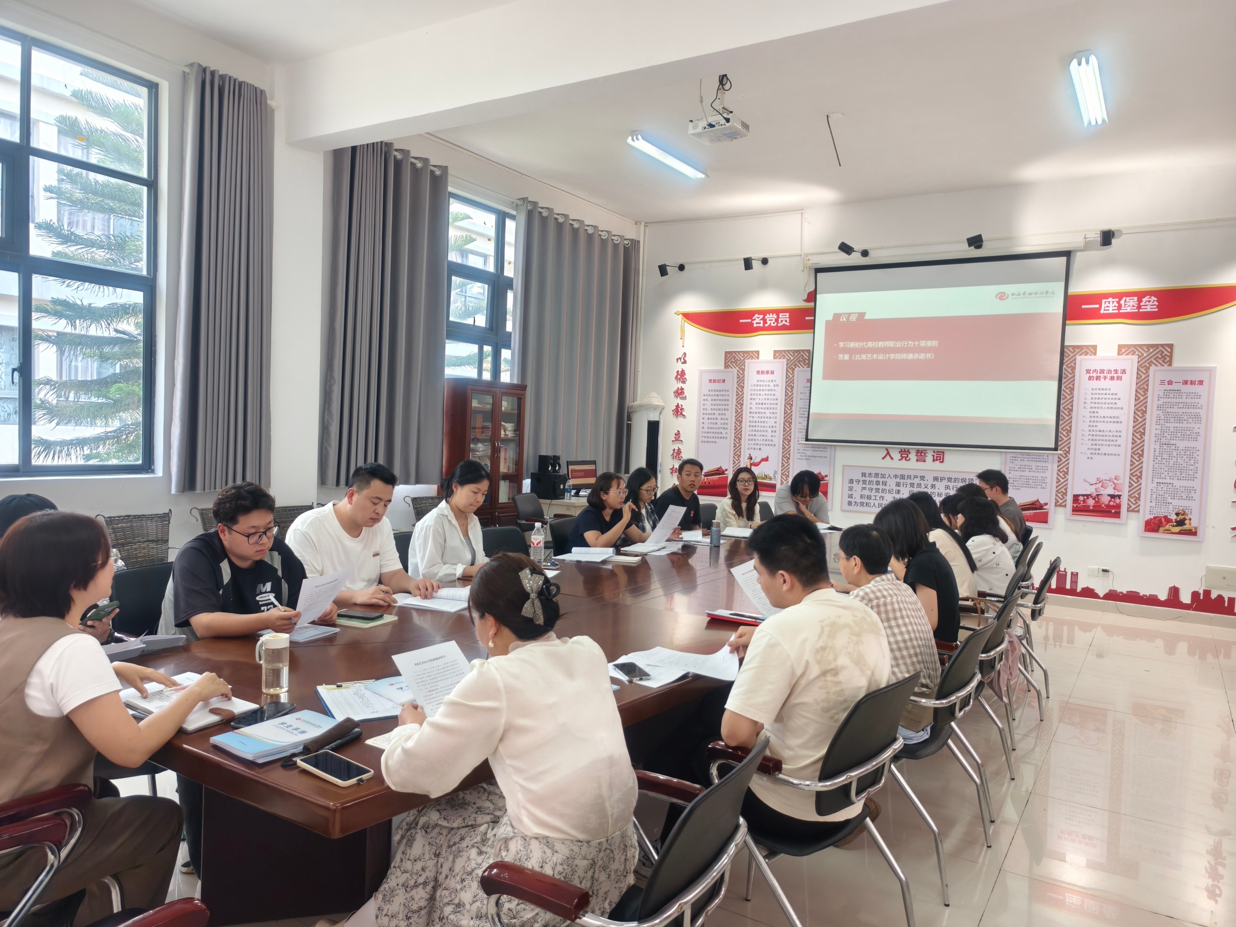 随后,会议进行《北海艺术设计学院师德承诺书》集体签署仪式。全体与会人员认真阅读承诺书内容,并郑重签署承诺书。签订师德承诺书不仅是一种仪式,更是一份沉甸甸的责任,将时刻牢记为党育人、为国育才的初心使命,争做有理想信念、有道德情操、有扎实学识、有仁爱之心的“四有”好老师。