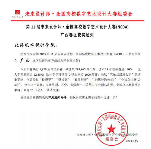 喜报 / 我院师生在2023第11届未来设计师·全国高校数字艺术设计大赛(NCDA)广西赛区中喜获佳绩!
