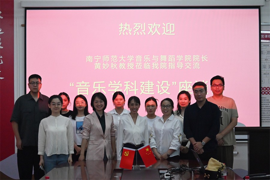 4月28日,南宁师范大学音乐与舞蹈学院院长、博士研究生导师黄妙秋教授受邀莅临我校交流,与人文教育学院部分教师进行座谈,并开展了名师大讲堂专题授课。