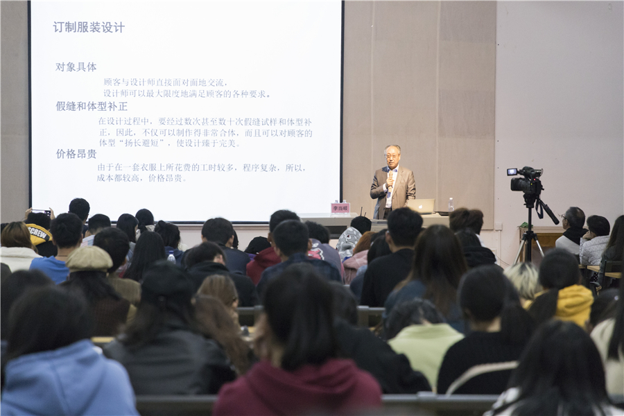 最后,李教授告诉同学们,学习服装设计需要手脑并用,以丰富的知识经验、创造性的表达意识和高效的工作效率来开展设计,努力锻炼自己成长为一名合格的服装设计师。