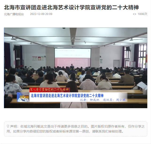 北海广播电视台:北海市宣讲团走进北海艺术设计学院宣讲党的二十大精神