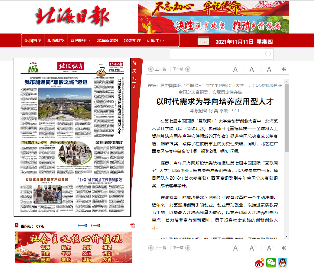 北海日报:北海艺术设计学院以时代需求为导向培养应用型人才
