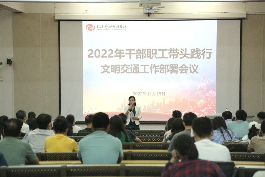 会上,韦静月传达了近期市创城办文明交通情况通报会精神,并组织与会教职工学习了解学校制定的《北海艺术设计学院关于干部职工带头践行文明交通的试行办法》文件。