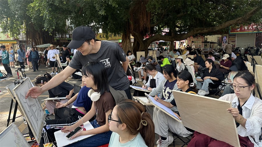 教授现场指导学生写生