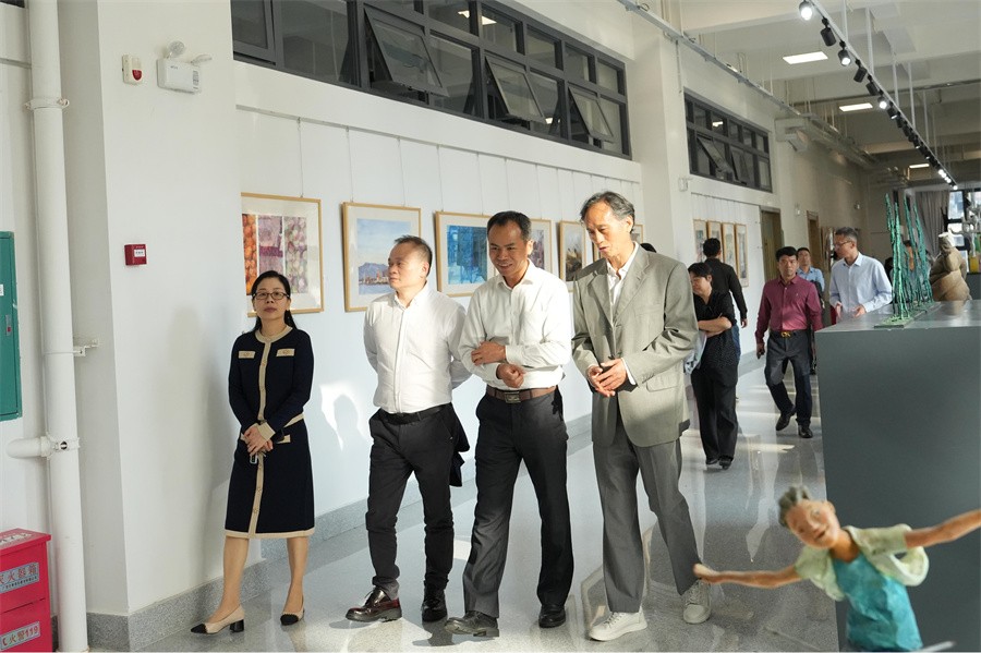 交流会前,专题培训班一行先后参观了学校石碑书法艺术文化景观长廊,“本科教学综合改革成果展”“校政企行协同育人 服务地方经济发展”展厅,舞蹈教室、大师工作室,绘画和雕塑展览、师生设计作品展等。(郭松 周小琪/摄)