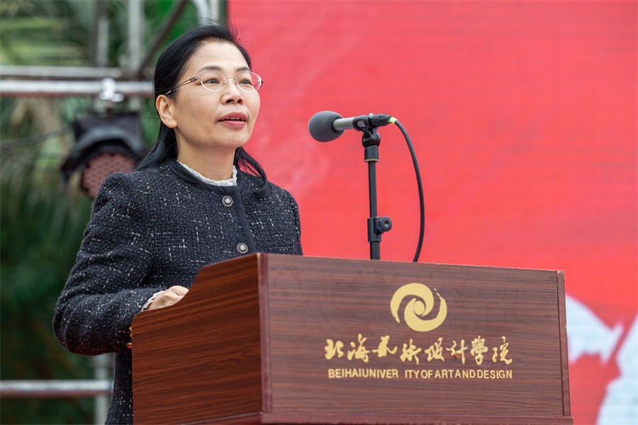 大会上,党委副书记陈毅华宣读了《北海艺术设计学院关于表彰2024级学生军训“优秀标兵”“优秀内务寝室”“优秀教官”“优秀连队”的决定》,向军训中的优秀个人、先进集体和在军训期间合唱比赛中获奖的连队进行表彰,并由现场领导依次颁发荣誉证书和锦旗。(李伟民 王金凤 何汝鑫 范佳涵 潘炜城 周小琪/摄)