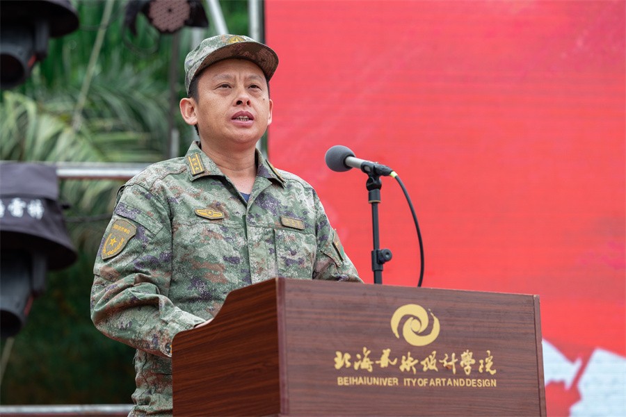 北海市海城区人民武装部政治委员郑成富发表讲话,对我校学子在此次会操中的出色表现给予了肯定。郑成富政委指出,我校学子在此次会操中以整齐的步伐、严整的军容、饱满的精神和昂扬的斗志,充分展现了军训的丰硕成果。尽管此次军训时间安排紧凑,训练任务繁重,但经过两周的连续奋战,全体参训学生经受住了体力与意志的双重考验。在军训期间,学生们尊重教官、服从命令、听从指挥,面对困难不退缩,刻苦训练,发扬了团结紧张、严肃活泼的优良传统,以及敢于吃苦、敢于胜利的精神。最终,他们出色地完成了各项培训任务,展现出了新时代青年的风采与担当。强国必须强军,军强才能国安。国防和军队建设是国家安全的坚强后盾,他鼓励青年学子在学校学好知识和本领的同时,关心关注国防建设,踊跃报名参军,积极投身到火热的军旅生活,报效祖国实现青春梦想,书写无悔人生。