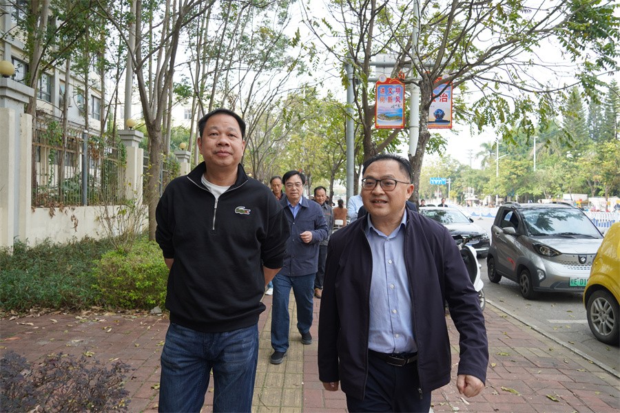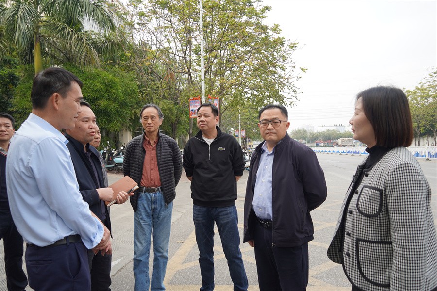 12月25日下午,为进一步加强长沙路我校路段及周边安全工作,保障师生生命安全与食品安全,北海市副市长鲁性东及市政府副秘书长蒲笛春、市自然资源局副局长、市规划局局长罗皞、市市政管理局副局长叶维海、市旅游文体局副局长韩云飞、市场监管局副局长蔡碧玉、市商务局副局长黄远新、市公安交警支队长刘振兴、银海区区委常委、副区长、统战部长莫志伟、银海区综合行政执法局稽查大队大队长刘兴德等领导到我校指导调研。我校党委书记覃宪儒、校长卢新华、副校长刘朝雄、副校长包建明及相关部门负责人陪同调研。