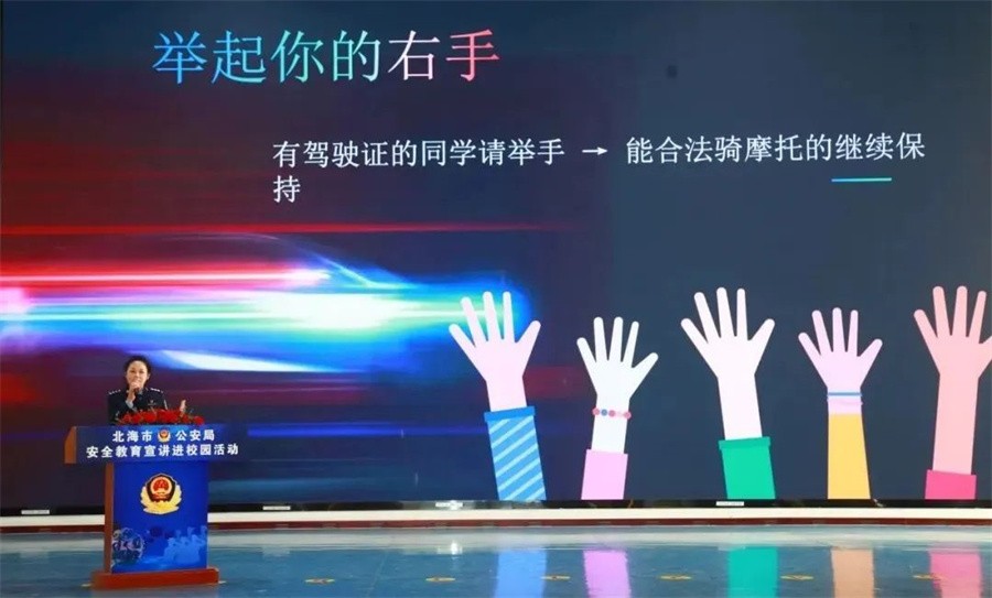 在法治教育宣传环节,市公安局多警种联动,围绕校园安全开展专题宣讲。交警支队民警结合典型案例揭示超速行驶、酒驾醉驾的危害,呼吁全体师生“青春不‘飙’车  安全向未来”。治安支队民警以校园暴力为切入点,深入剖析典型案例,传授自我保护技巧。新网侦支队民警聚焦网络安全,揭露在学生身上常见的刷单返利类诈骗、网络游戏产品虚假交易等诈骗手段,引导学生识别网络风险,筑牢“网络防火墙”。禁毒讲师、银海分局民警结合涉毒案,详细讲解了毒品的危害及新型毒品“依托咪酯”的风险,增强青少年禁毒意识,并倡导青少年坚决对毒品说“不”。