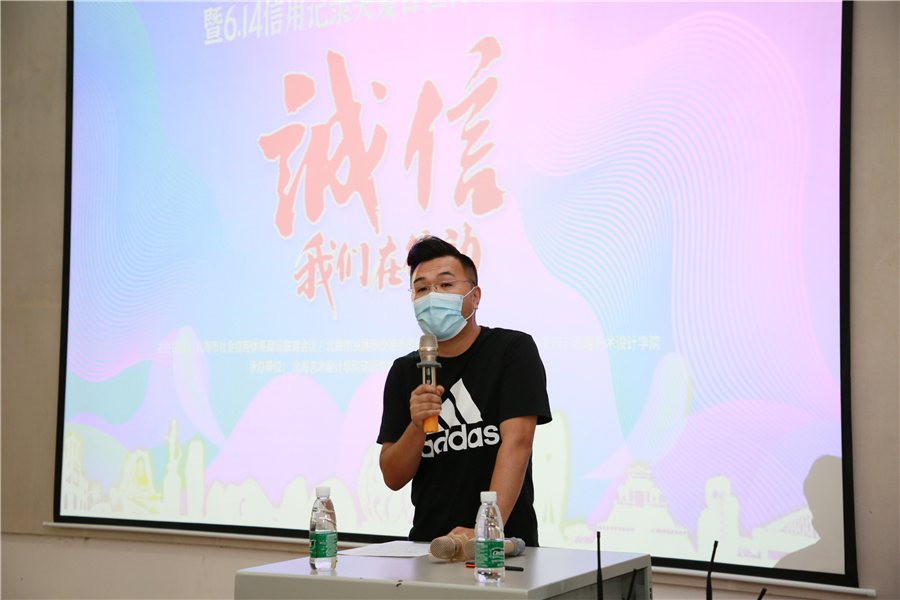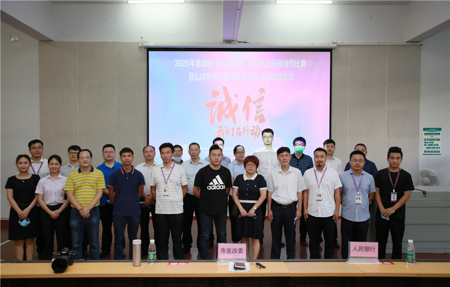 6月12日下午16时,由北海市社会信用体系建设联席会、北海市发展和改革委员会、中国人民银行北海市中心支行携手北海艺术设计学院举办的2020年北海市“征信·创城杯”诚信主题漫画创作比赛暨6.14信用记录关爱日宣传活动启动仪式在我校西区伦理楼107隆重举行。中国人民银行北海市中心支行副行长徐 斌,北海市发展和改革委员会副调研员林超霞,北海市发展和改革委员会信用督导科科长杨禾泽,中国人民银行北海市中心支行征信管理科科长毛卫东,我校副校长、党委副书记彭仁,副校长邱杰及二级学院、学工处相关领导,北海各银行征信业务牵头部门负责人出席了启动仪式。