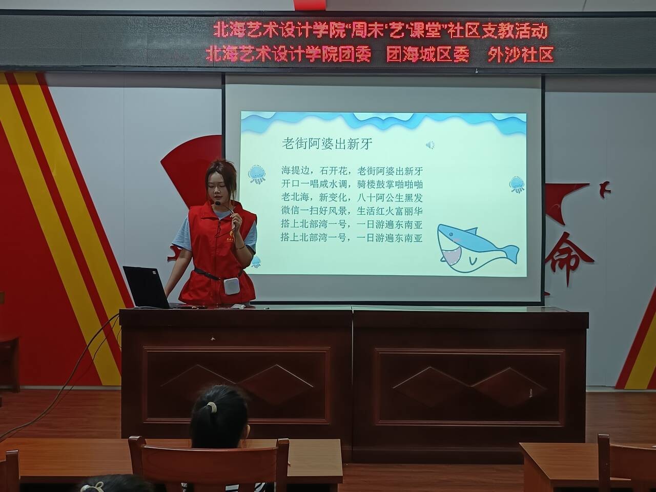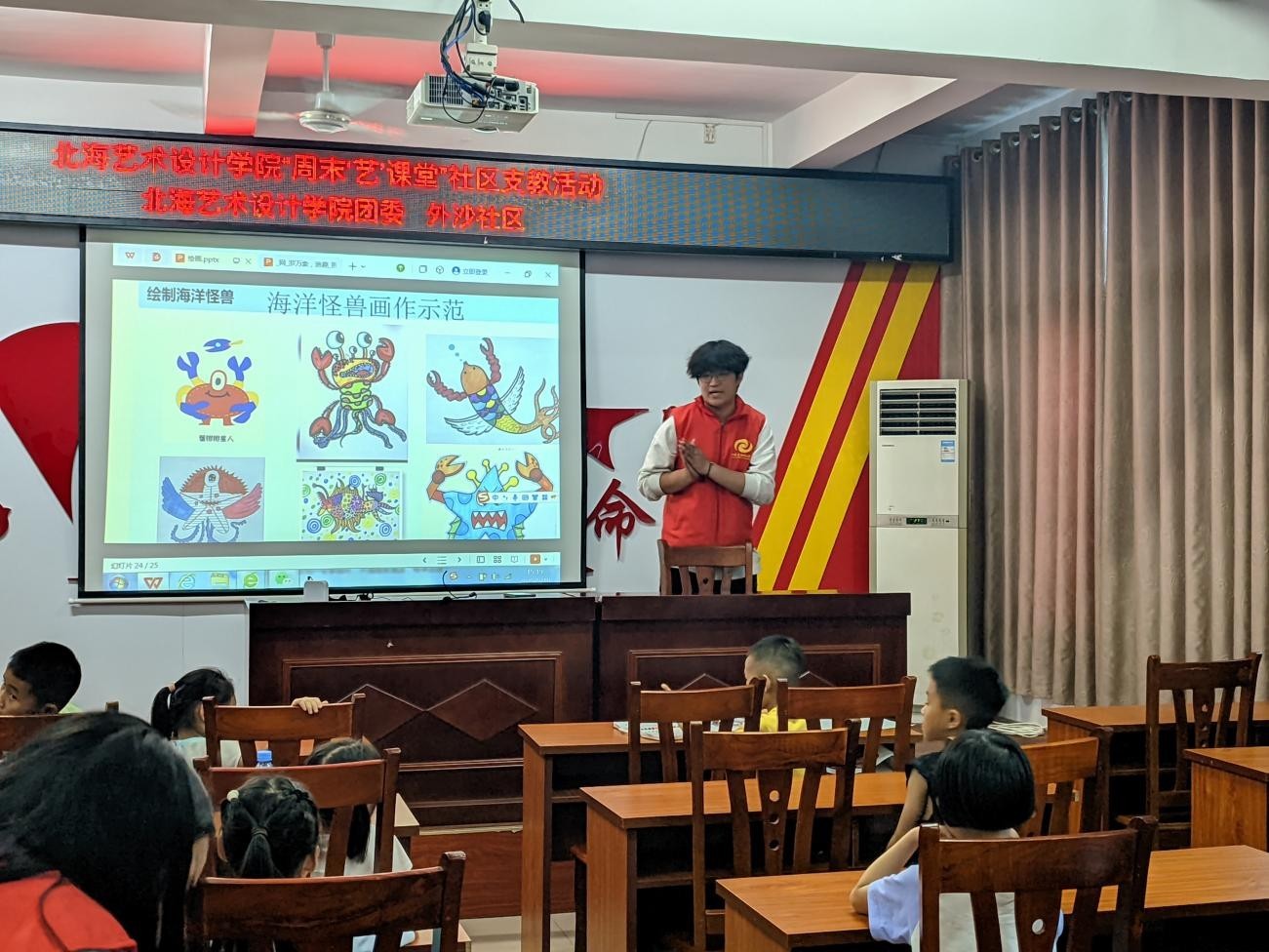 为深入学习宣传贯彻习近平总书记关于广西工作论述的重要要求,进一步弘扬“奉献、友爱、互助、进步”的志愿服务精神,本学期我校团委青年志愿者协会组织50余名志愿者在外沙社区共开展六次“周末‘艺’课堂”社区支教活动。