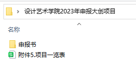 1.电子版:申报书(含两个文件夹,分别以“推荐项目/未推荐项目”命名)、项目一览表以上内容须置入1个文件夹内并压缩成1个Rar格式文件,文件夹命名:二级学院+2023年申报大创项目(例“设计艺术学院2023年申报大创项目”)。由各二级学院汇总后于2023531前发送至邮箱:bhyscxcy@163.com不接收学生个人项目单独发到此邮箱)。二级学院文件夹压缩包层级如下: