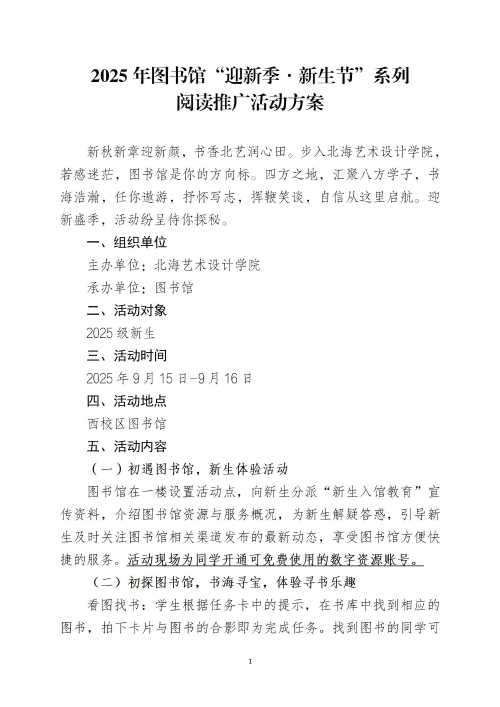 2025年图书馆“迎新季•新生节”系列阅读推广活动方案