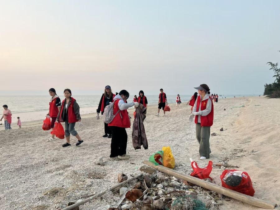 在我院2024级学子赴涠洲岛开展写生实践活动之际,设计艺术学院分团委组织开展了“守护蓝色海岸线,共筑美好涠洲岛”的主题清洁志愿活动。活动由分团委副书记覃轶科老师带领,主要围绕涠洲岛滴水村海岸周边展开。