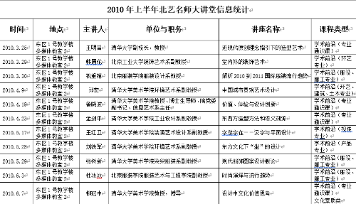 2010年上半年北艺名师大讲堂信息统计