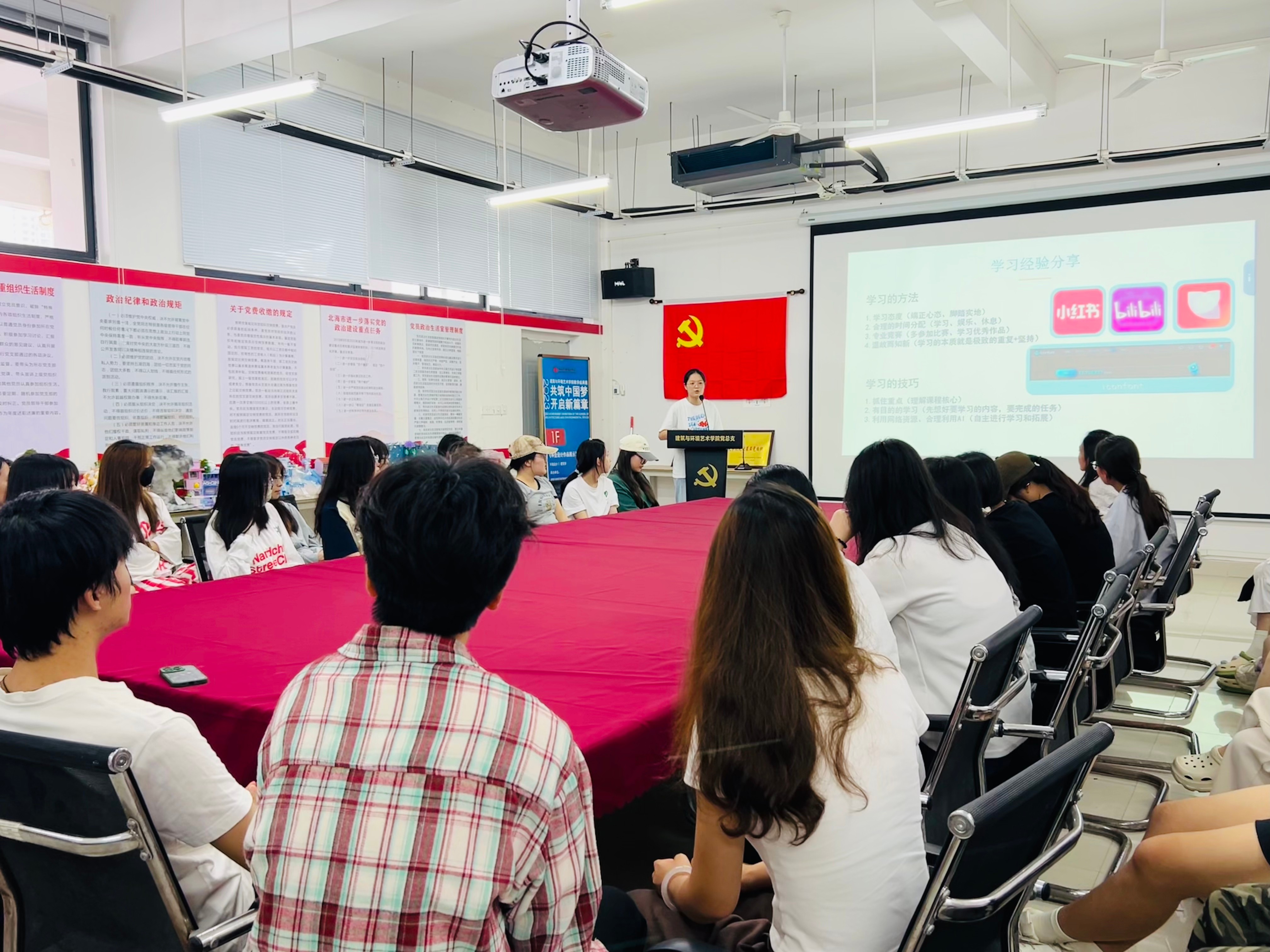 为充分发挥朋辈引领作用,激发低年级学生专业学习热情,提高学生学习效率,根据北艺学工〔2025〕13号文件,建筑与环境艺术学院于2025年5月9日在公德楼507教室召开召开奖学金分享会。分享会由学院副书记曲玥老师出席,学工办李光英老师组织,国家奖学金获得者环设2203李未、环设2204向宇乐、自治区奖学金获得者环设2204范好文进行学习经验分享,环设2024级各班成绩优异的学生代表参会。