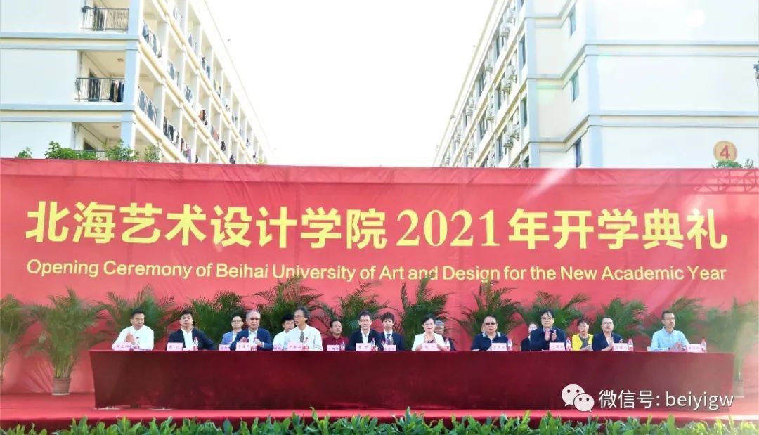 金秋十月,缘聚北艺。10月12日上午,北海艺术设计学院在西校区田径场举行2021年开学典礼。北海市委教育工委专职副书记黄毅、北海市高等教育管理服务办公室主任包建明、清华大学学术委员会副主任李当岐教授,学校领导卢新华、贺争平、彭仁、韦静月、陶立阳、黄侃明、郑念贻、刘朝雄及全校一万多名师生一同参加了典礼。典礼由校党委书记张阳主持。庄严雄壮的国歌声响彻校园,开学典礼在升旗仪式中拉开序幕。