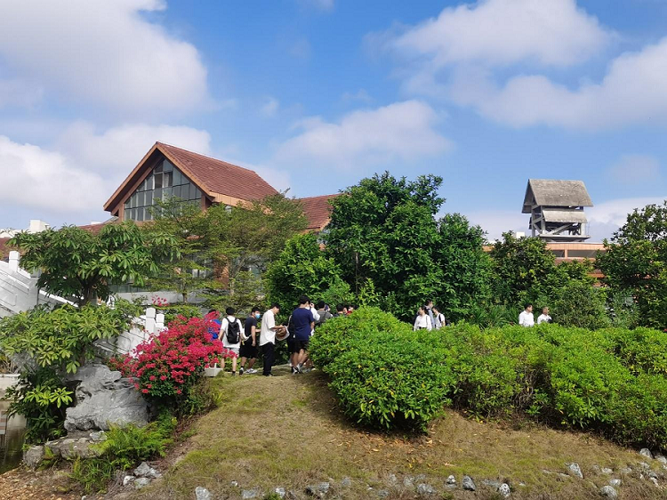 本次揭牌仪式结束后,北艺书院师生参观游览北艺书院,在精巧别致、古色古香的园林建筑里,赏花草树木,观鱼虫嬉闹,浸书墨之香,品文化气息。(陈真考/摄)