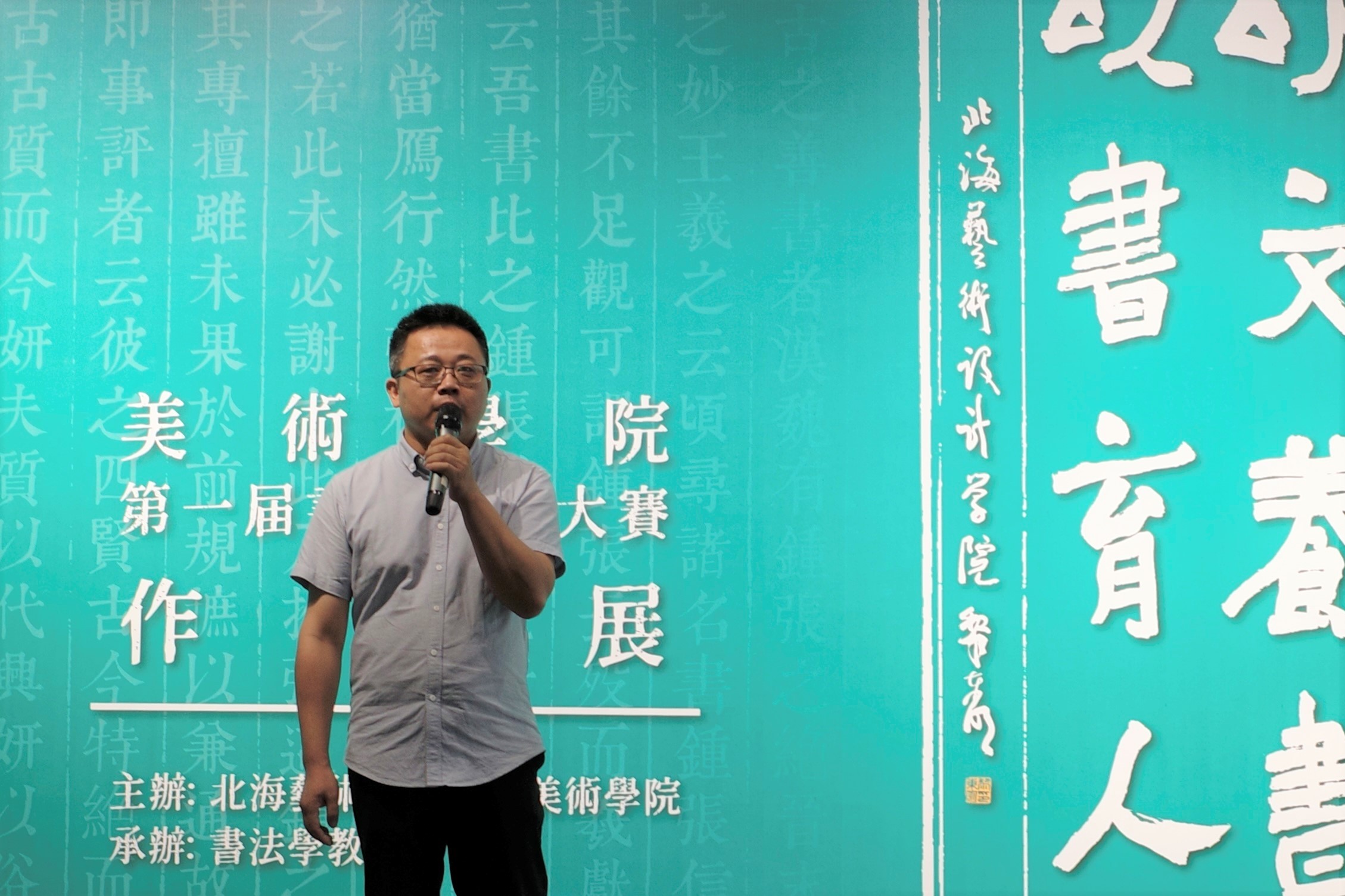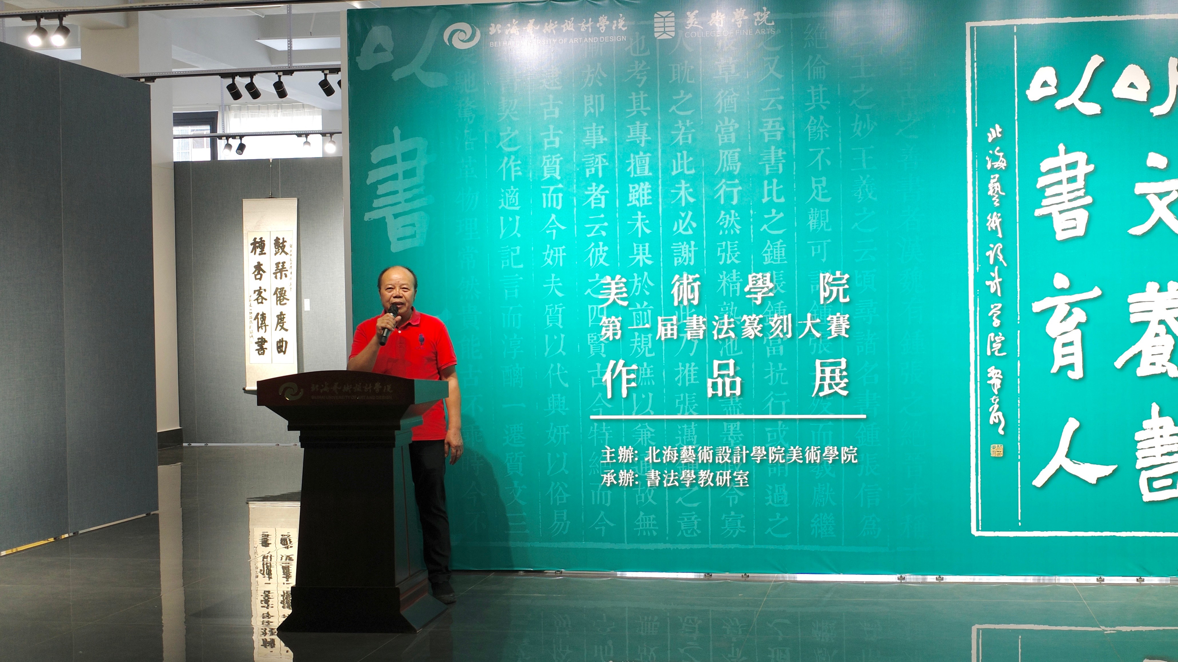 苏乃从主任在开幕中对本次展览情况进行简要介绍,其中提及本次展览收集作品数量以见同学们对比赛的重视。在对以中国传统文学经典为书写内容对“以文化人、以书载道”的传承,“学创融合,课展一体”教学模式的开展等方面进行阐述,并对在展览期间给予大力支持的学院领导、老师、同学们表示感谢。