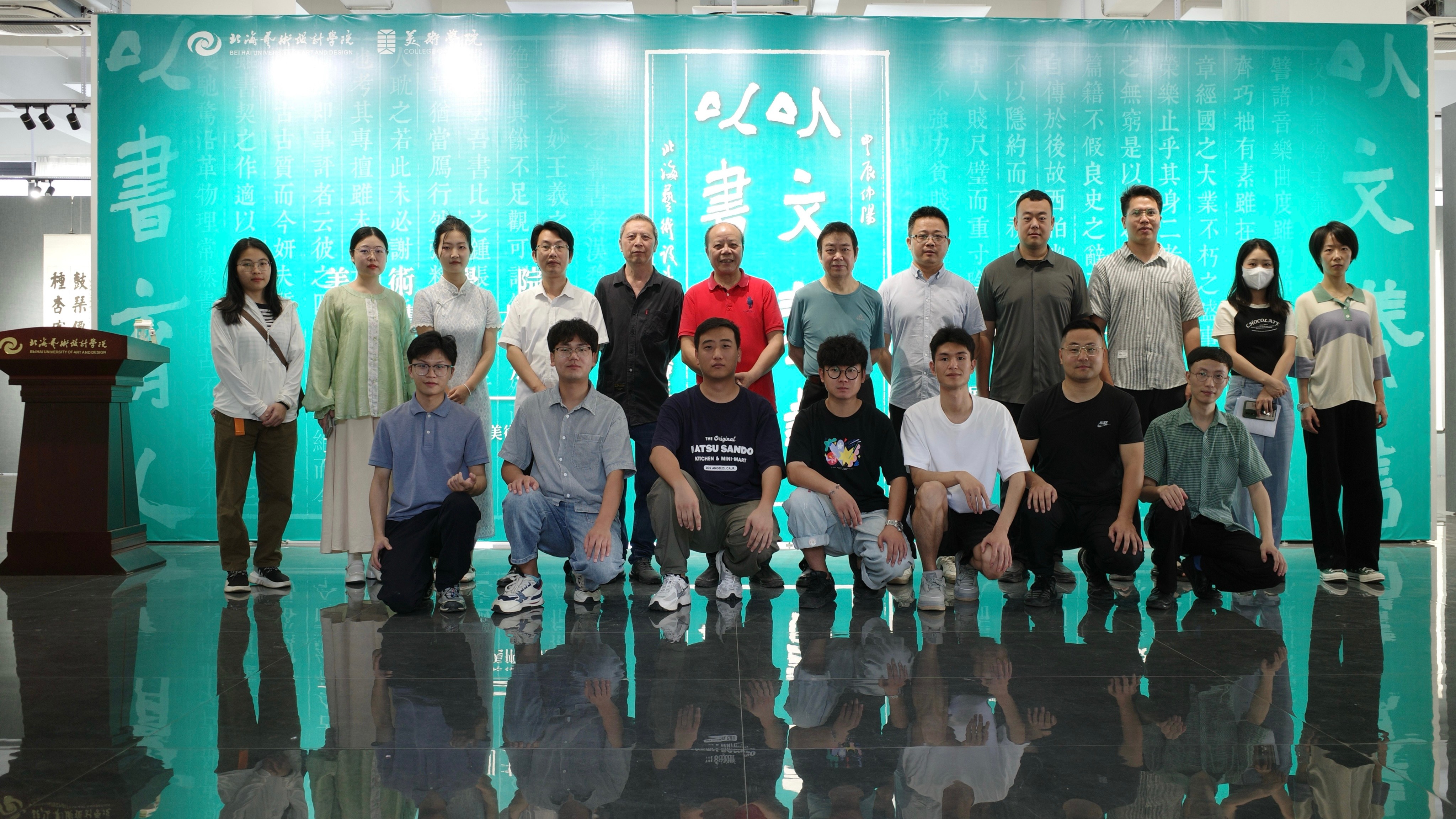 2024年4月19日,于北海艺术设计学院艺德楼举行“以文养书,以书育人”美术学院第一届书法篆刻大赛作品展开幕仪式。本次活动由书法学教研室主任苏乃从主持,书法学专业学科带头人黎东明教授、书法学外聘教授邓建华、万应均以及2022、2023级书法学全体师生参与,并邀请美术学院常务副院长龚为、美术学院党总支副书记鲁明阳、美术学院学工办主任林昌华。