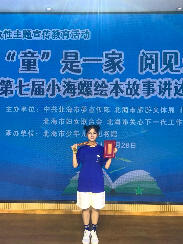 2024年7月,由中共北海市委宣传部、北海市旅游文体局、北海市教育局、北海市妇女联合会及北海市关心下一代工作委员会联合主办,北海市少年儿童图书馆承办“‘童’是一家阅见未来”北海市第七届小海螺绘本故事讲述大赛圆满落幕。经过激烈角逐,我校教育学院2023级学前教育专业马杨燕荣获成人组一等奖,北海艺术设计学院荣获“优秀组织单位奖”,教育学院教师陈美霖荣获优秀组织者奖。