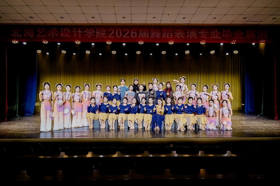 此次毕业展演的圆满落幕,既是对2026届舞蹈表演专业学子学习成果的集中检阅,也为他们的校园艺术生涯画上了圆满句点。北海艺术设计学院舞蹈学院将继续秉持育人初心,深耕专业建设,为舞蹈艺术领域培育更多优秀人才。(王飞/摄)