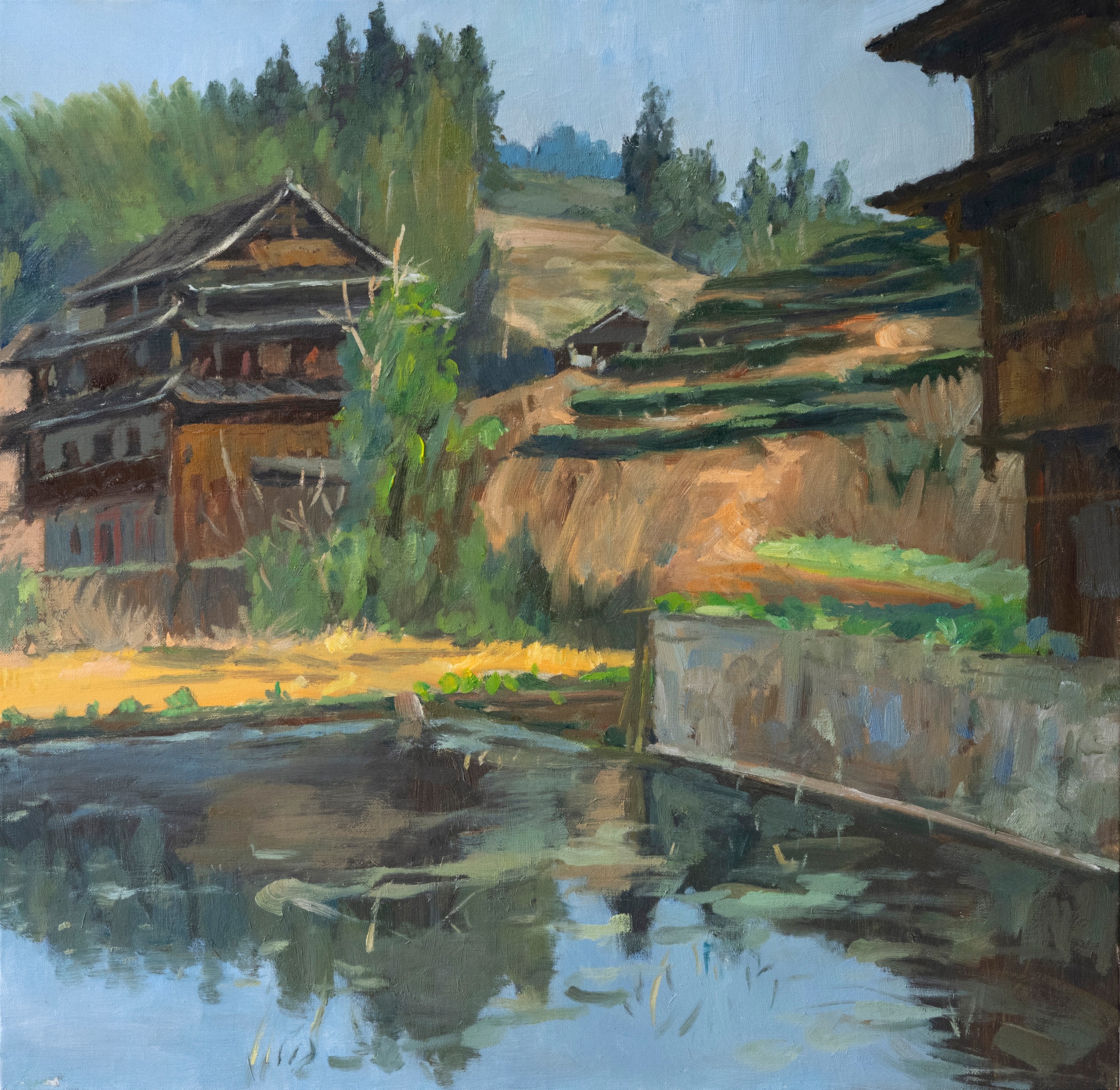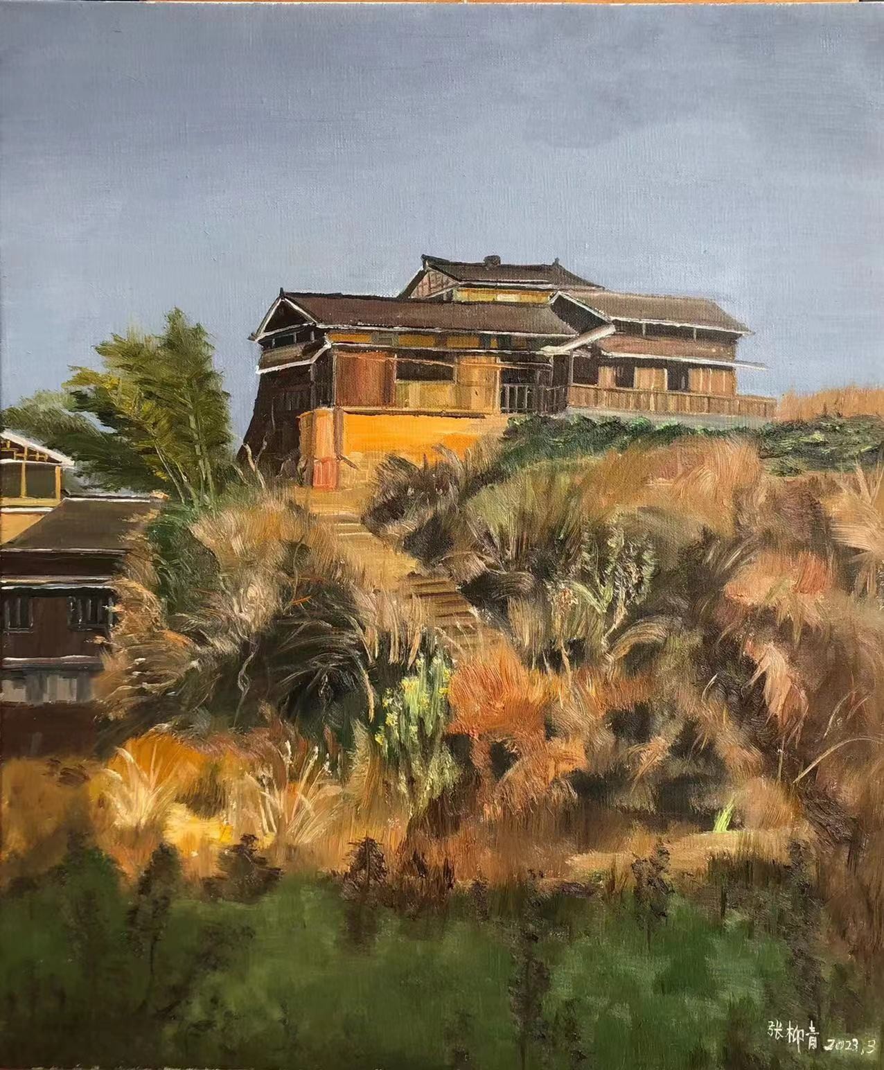 阳光下的木楼》 50x60cm
