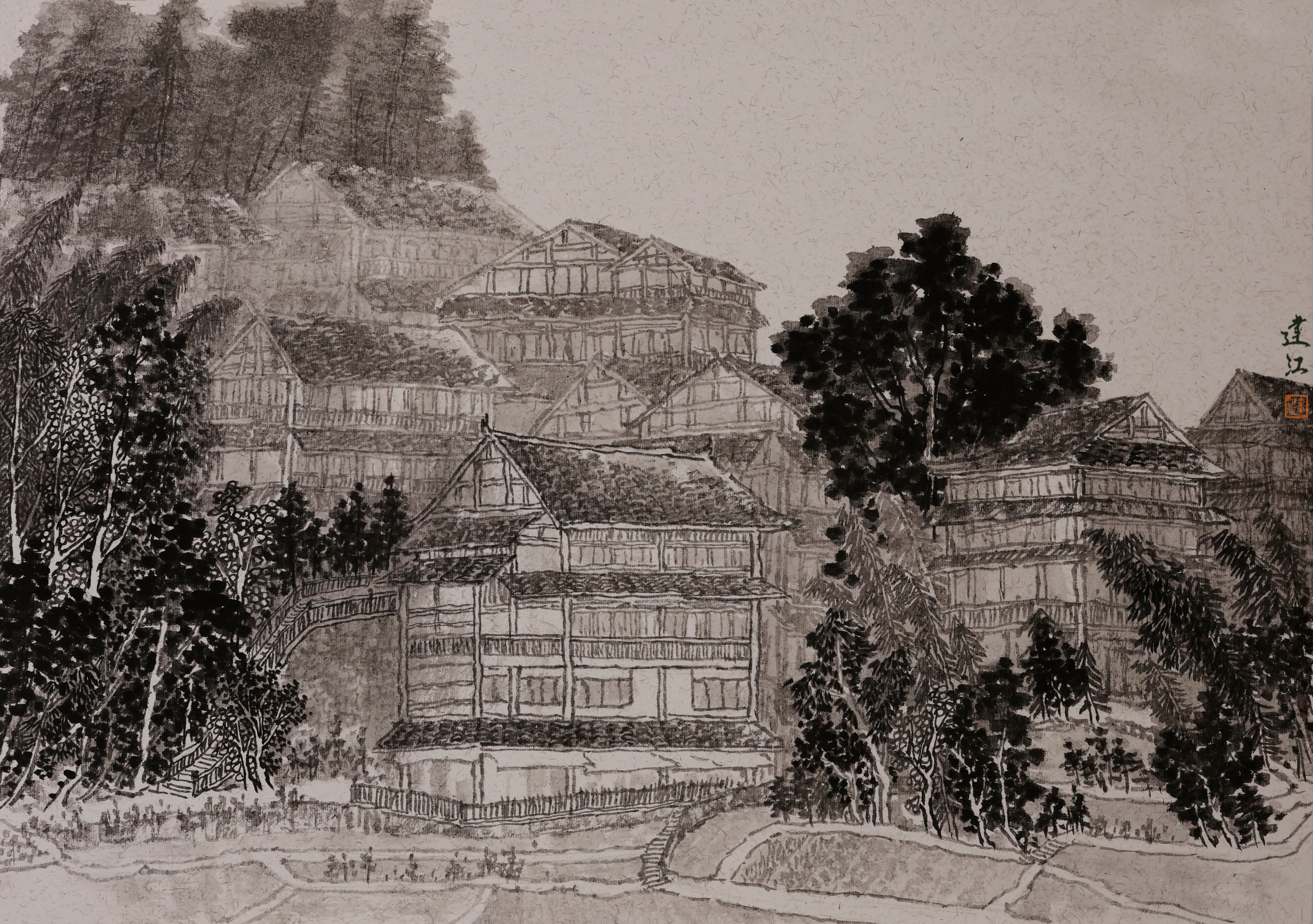 《三江程阳八寨之岩寨》 41×29cm