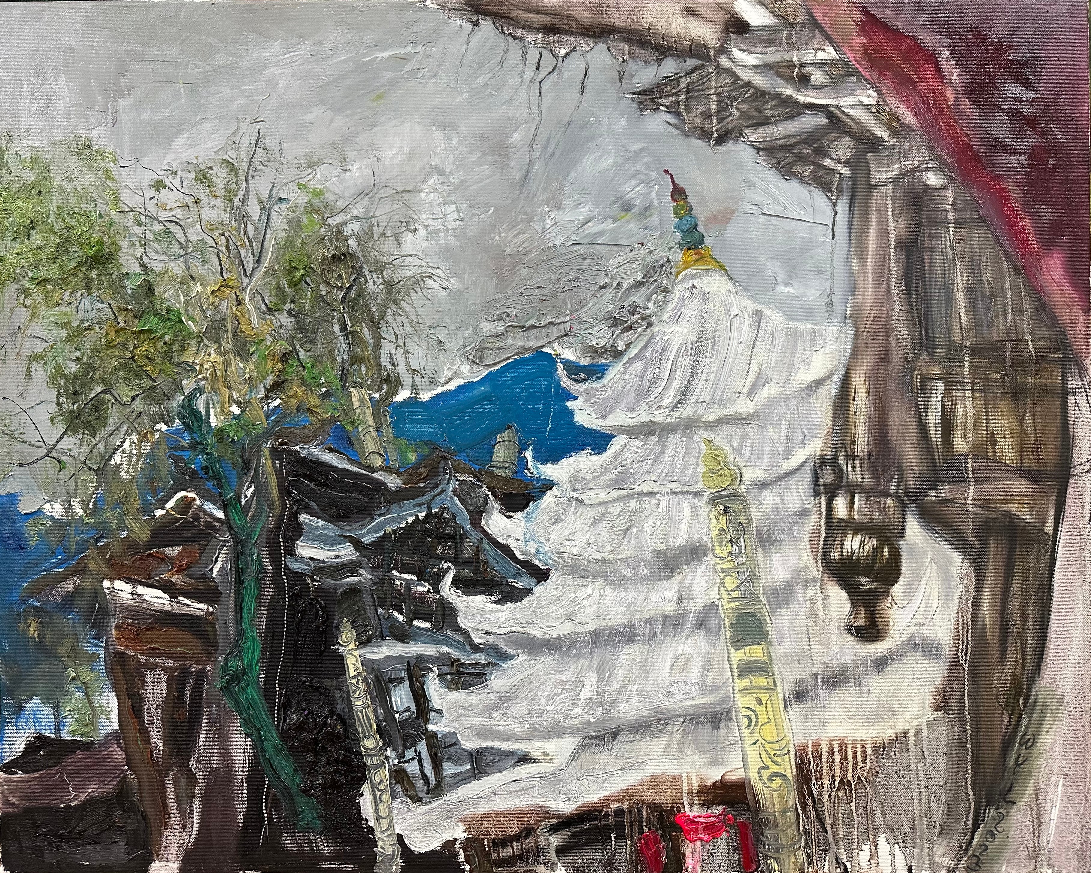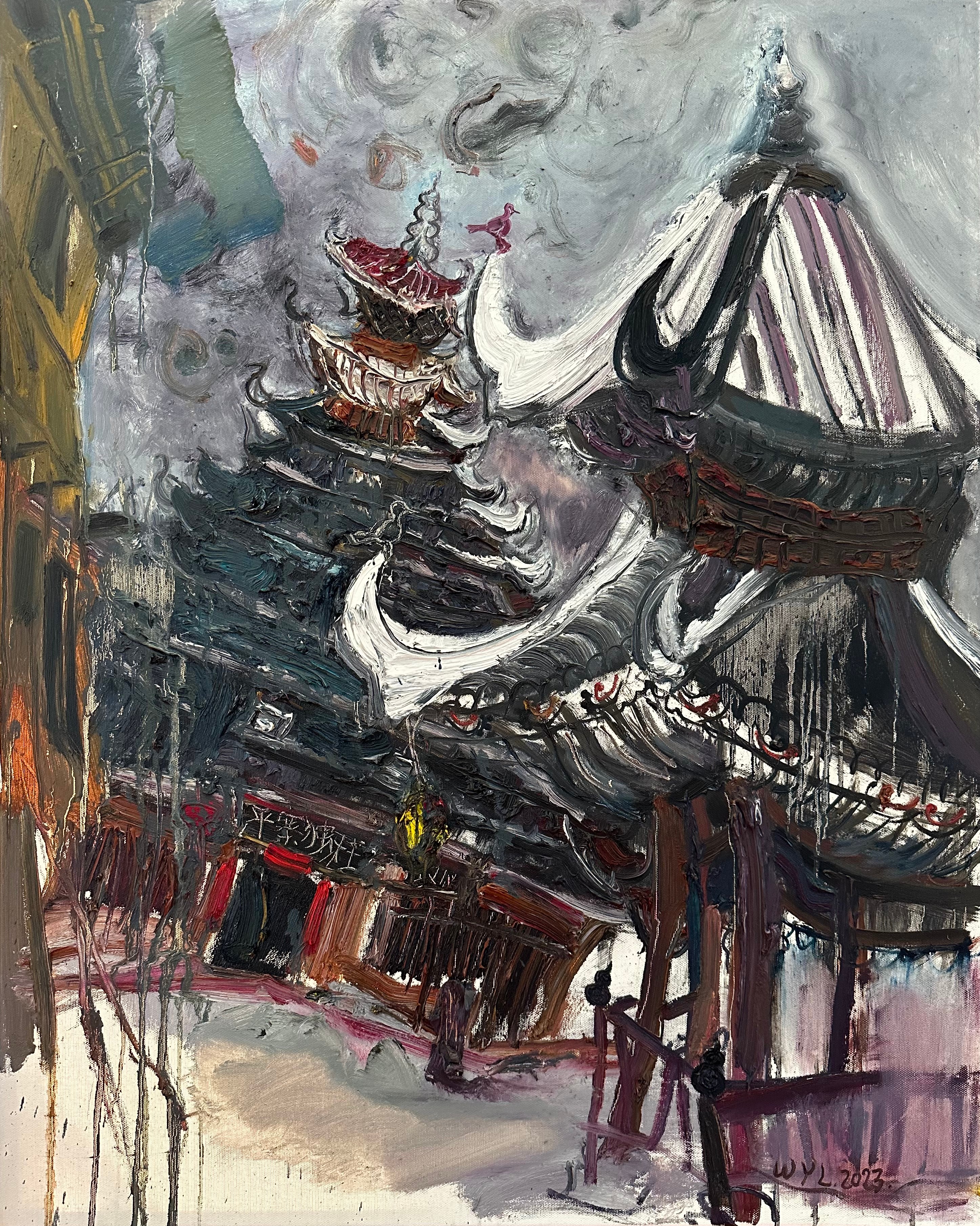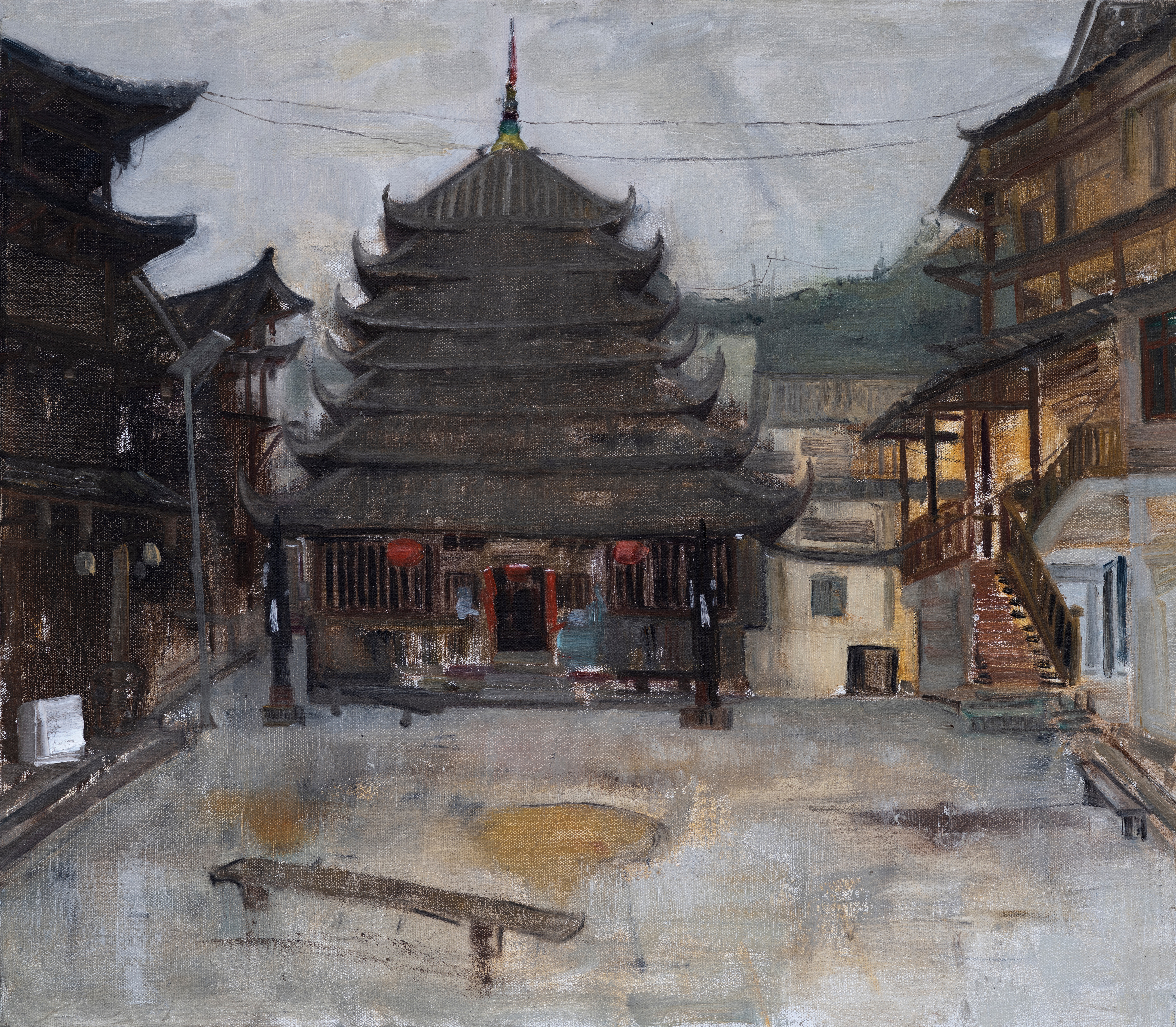 《独柱鼓楼》 80x100cm