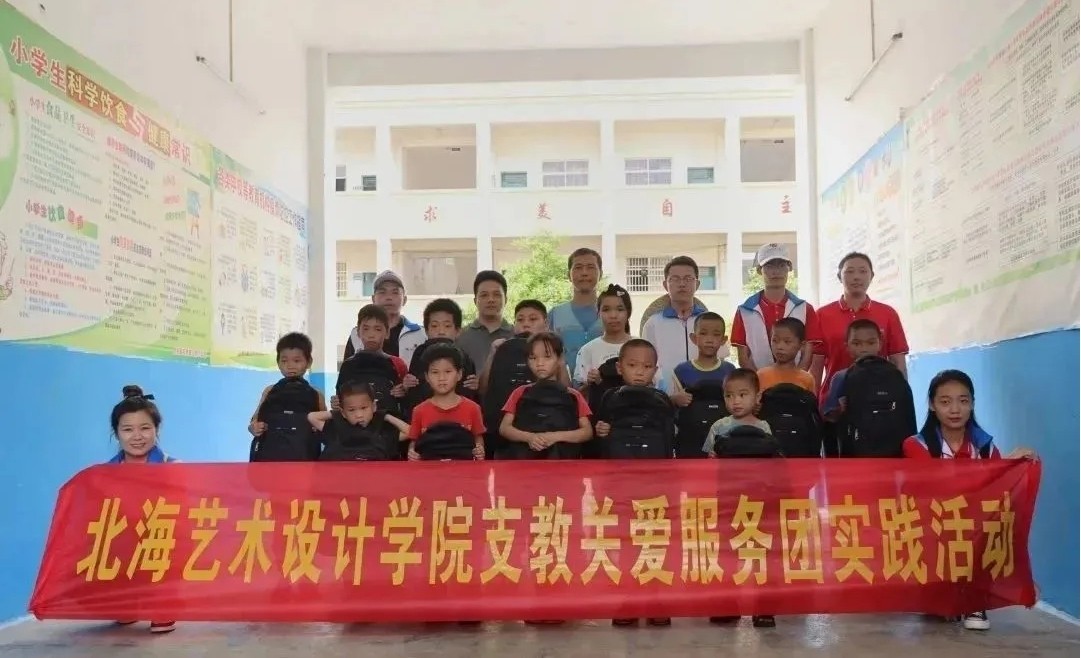 61516,北海艺术设计学院支教关爱服务团在北海市合浦县石湾红锦小学开展手工、音乐、绘画、口才小课堂,乡村小学校园文化墙绘设计等活动。我院志愿者们红锦村小学的墙绘也重新进行了整体修缮与设计;在红锦村小学开展了《怪兽大学》趣味画的美术课堂教学将自己所学专业知识通过生动有趣的方式教小朋友