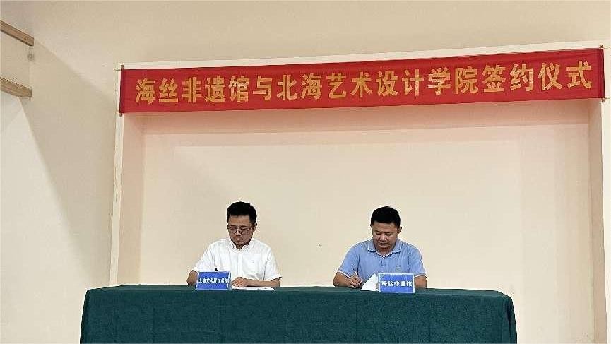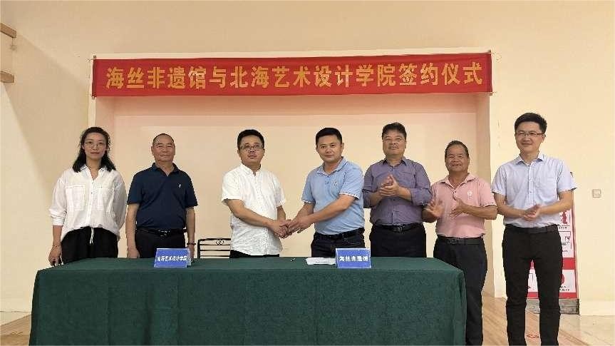 2024326日,北海艺术设计学院美术学院龚为院长一行四人前往北海市非遗体验馆走访调研,与北海市工艺美术协会、非遗传承人们探讨地方非遗发展。在二十余位工艺美术大师和非遗传承人的见证下,我院与广西海路非遗文化传播有限公司圆满完成了校企合作签约仪式。
