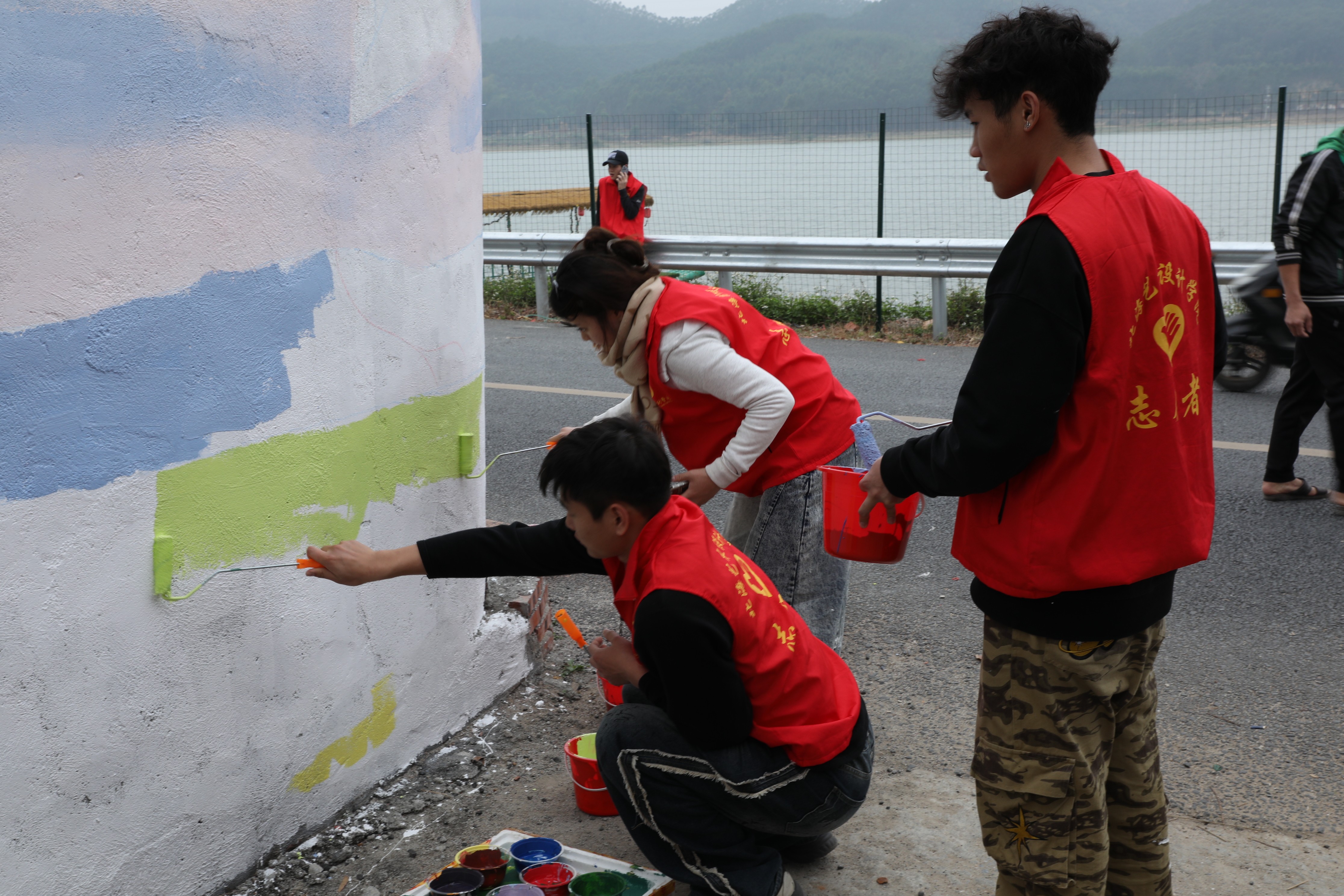 井山村小洱海墙绘学生绘制过程图