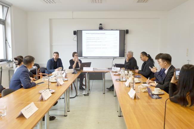 期间,代表团与佩奇大学就读的北艺在读硕士亲切座谈,细致倾听学子在海外的课程适配、学术研究难点及跨文化适应等诉求,深入了解其学习生活全貌,传递学校的深切关怀与坚实支持,筑牢师生跨国沟通纽带。基于交流中掌握的一手情况,代表团明确将针对性优化国际联合培养课程体系,完善海外学子帮扶机制,未来将更精准地定位人才培养方向,着力提升国际文化学术能力与国际竞争力。此外,代表团还与中国博士留学生交流经验,为后续人才培养积累参考。
