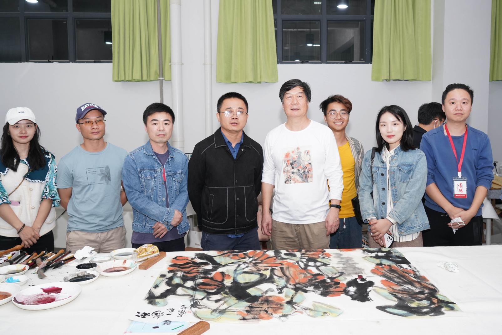 2020年11月15日下午,广西艺术学院艺术研究院副院长蔡智教授来到我校美术学院国画教室,为师生们进行国画现场创作示范。我校副校长胡胜、美术学院常务副院长龚为陪同出席活动,现场吸引了许多师生前来观摩学习。