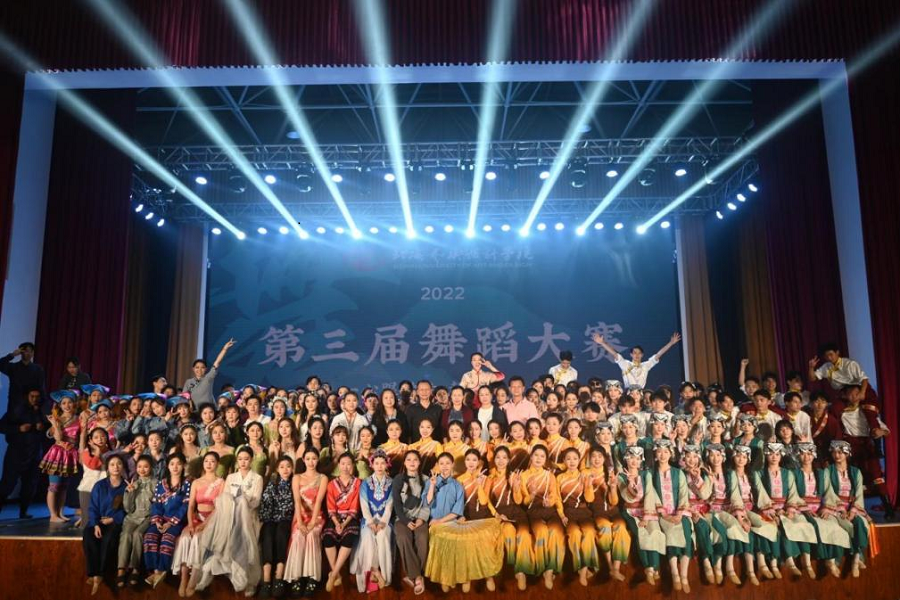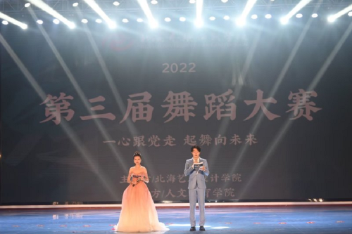 为深入学习党的二十大精神,加强舞蹈表演专业实践,推出一批宏扬中华文化、继承革命传统、反映新时代、新风貌的优秀舞蹈作品,丰富大学生的校园文化生活,2022年11月20,北海艺术设计学院在西校区大礼堂举办“一心跟党走,齐舞向未来”第三届校园舞蹈大赛决赛。