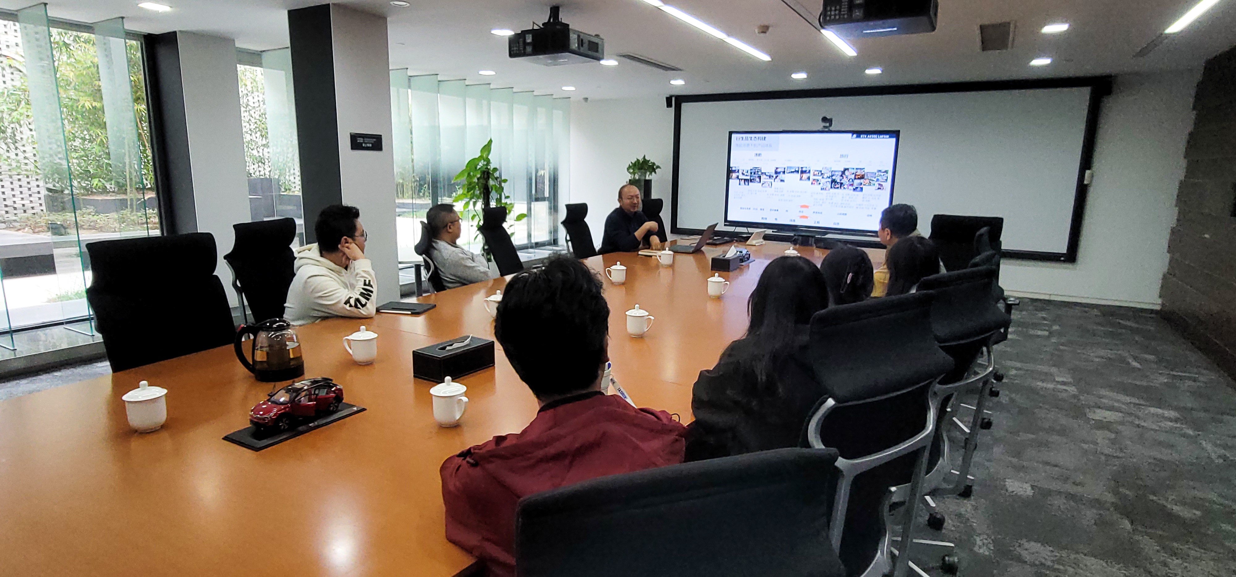 师生在哪吒汽车设计中心会议室开展研讨会