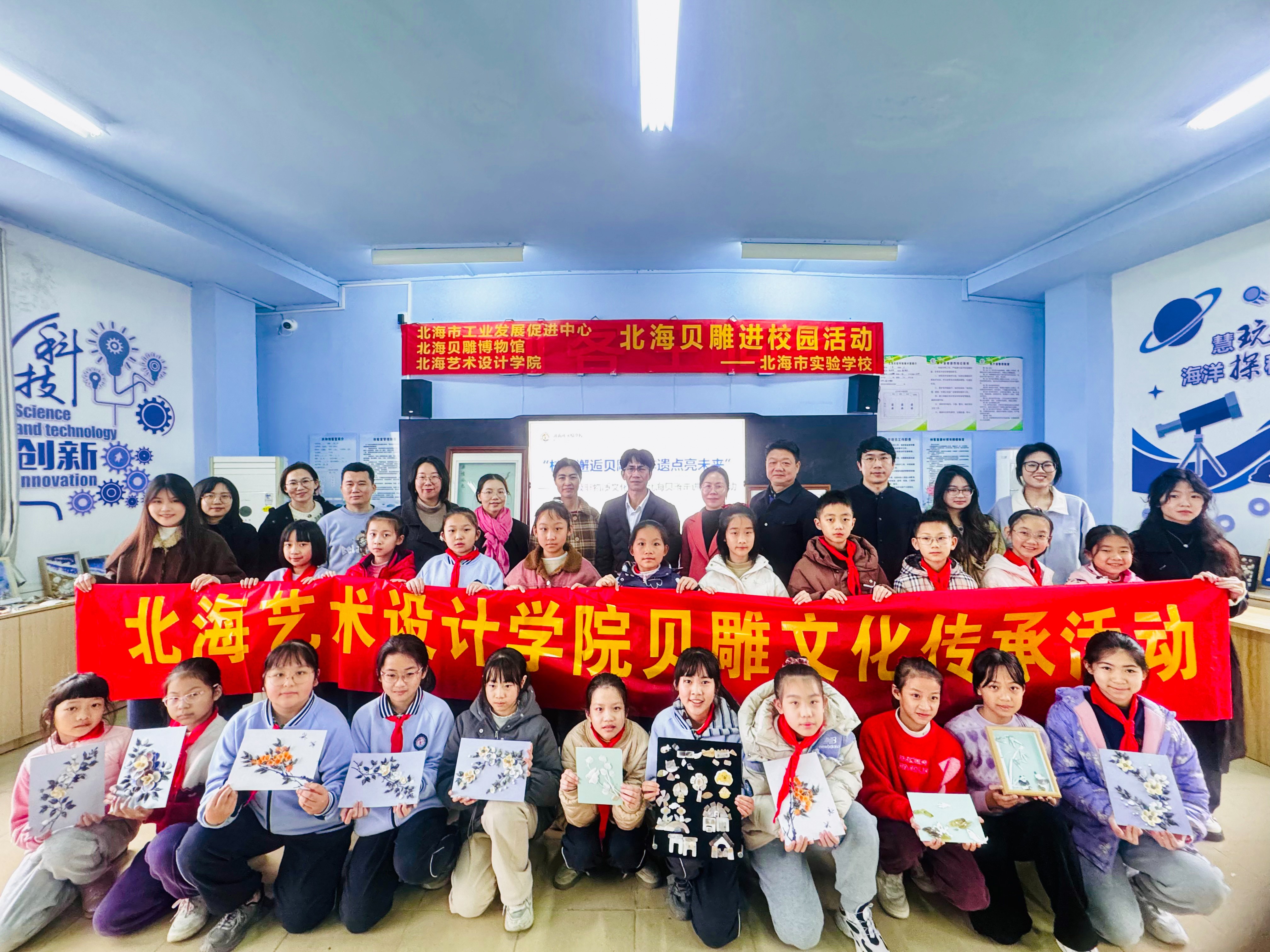 北海贝雕进校园活动集体留影