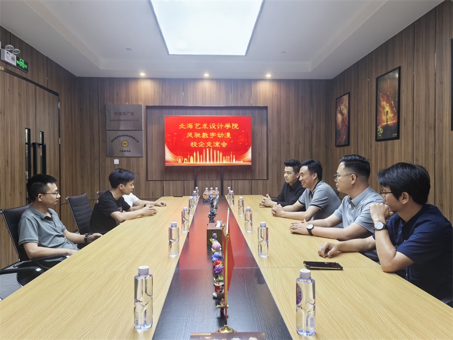 调研团队与风驰动漫创始人、校友李杨武深入交流,为学校动画专业“宽基础、专精方向”的模式提供实践镜鉴。李杨武指出,动画制作人才需具备全流程认知能力,同时精研建模、材质、特效等核心专项技能。