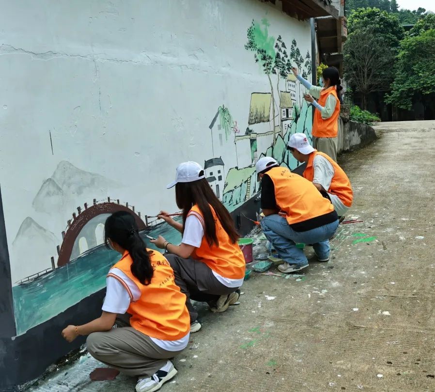 接着志愿者们开展了环境保护活动与墙绘活动,将自身的专业知识与本领运用到为人民服务之中去,通过墙体绘画装点村容村貌,用色彩勾勒出美丽乡村的完美画卷。墙绘的打造,不仅为美丽乡村增添了一道靓丽的风景线,还促进了当地旅游业的发展,为美丽乡村建设注入色彩与活力。